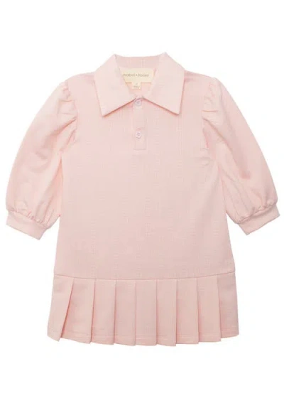 The Serena dress brings effortless style to your little one?s wardrobe. Featuring a soft pink hue with a subtle textured pattern, this dress boasts long sleeves, a classic collared neckline with button details, and a pleated skirt for added volume. Perfect for both playdates and special occasions, it offers elegance and comfort in one delightful design. Fabric Content & Care 92% POLYESTER 8% SPANDEX Machine Wash Cold | Line Dry | Do Not Bleach Fabric Content & Care 92% POLYESTER 8% SPANDEX Machine Wash Cold Line Dry Do Not Bleach