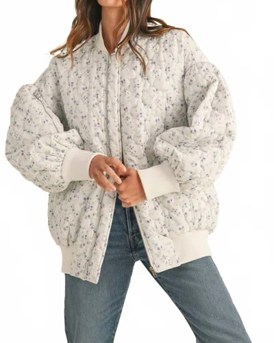 Floral Print Quilted Oversized Bomber Jacket In Off White