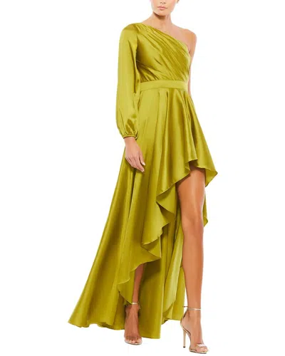 Elevate your evening look with the stunning 'Mac Duggal High Low Flowy Gown'. This elegant gown features a one shoulder design with long sleeves and a cuff, creating a chic and sophisticated silhouette. The vibrant chartreuse color is perfect for making a statement at any special event. Constructed from 100% polyester with a 100% polyester lining, this gown is both luxurious and comfortable to wear. The concealed back zipper ensures a sleek, polished look, while the built-in bra adds extra support and convenience. Measuring approximately 60 inches from shoulder to hem, this gown is true to size and ideal for a variety of body shapes. Made with quality and care in mind, this gown is imported and should be spot cleaned and laid flat to dry for best results. Make a memorable entrance in the 'Mac Duggal High Low Flowy Gown' and turn heads wherever you go.