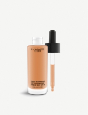 MAC Studio Waterweight SPF 30 FoundationApplication: apply to face using a sponge or foundation brush, then blend with fingers, sponge or brush. Use the new 196 Slanted Flat Top Foundation Brush for a naturally flawless finishLong-wearingProvides instant and all-day hydrationOffers broad spectrum UVA/UVB SPF 30Non-cakingNon-streakingFor all skin typesDermatologist testedOphthalmologist testedFor hygiene reasons, this product cannot be exchanged or refunded, unless faulty.