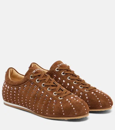 MACH&MACH Ballet Runner Embellished Suede Sneakers In Brown