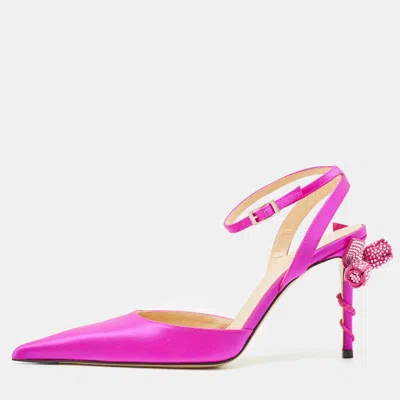 Pre-owned Fuchsia Satin Wonder Tulip Ankle Strap Pumps Size 37 In Pink