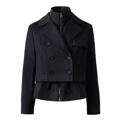 ALINE-CO is a versatile 3-in-1 jacket crafted from a durable polyester-cotton blend, designed to provide adaptable styling options. Featuring a classic double-breasted front with a wide tailored collar, this jacket includes an inner layer with an adjustable bungee waist and zippered pockets for added utility. The contrast fabric and adjustable cuffs enhance functionality, while the inner tonal “M” silicone patch and outer “MACKAGE” embroidery add subtle branding details. Convertible 3-in-1 jacket Double-breasted outer layer with wide tailored collar Adjustable bungee at waist (inner layer) Button front closure (outer layer) Welt pockets on outer layer and zippered pockets on inner layer Adjustable sleeves and cuffs “MACKAGE” embroidery at hem (outer layer) M" tonal silicone patch (inner layer) SIZE & FIT REGULAR – Classic fit allowing comfort and style. Designed to be worn with heavier layers. The model is 5'11" (180 cm) and wears a size S. Coat length from shoulder to hem: 22 ¾'' / 58 cm. COMPOSITION & CARE INSTRUCTIONS Shell: 65% recycled polyester, 35% cotton. Combo shell 1: 100% recycled polyester. Lining: 100% recycled polyester. Dry clean by a leather specialist using only oil-based solvent. Do not use perchloroethylene. "