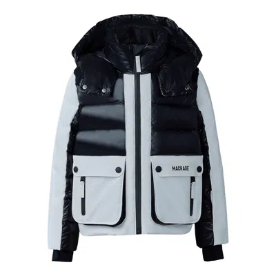 ANDRE-T is a down ski jacket for kids featuring a removable snap hood fitted with an elasticated storm visor. Designed for comfort with a mixed-media stretch shell and built for customizable warmth with a detachable snow skirt. Insulated double-entry waist pockets add further protection for days out in the snow. Made for the wear and tear of little ones on the mountain. Mixed-media down ski jacket Windproof, Water-repellent, resistant, and breatheable - Zippered ski pass sleeve pocket Removable snap hood Elasticated storm visor Center front zip closure with stand collar Insulated double-entry waist pockets Active storm cuffs with thumb hole Water-resistant zippers Quilted body and sleeves Detachable powder skirt Fully lined Under-arm eyelets for ventilation Regular fit Machine washable SIZE & FIT Coat length from shoulder to hem: 21'' / 53 cm. Based on size 10. COMPOSITION & CARE INSTRUCTIONS Shell: 100% recycled nylon. Combo shell: 84% polyamide/nylon, 16% elastane/spandex. Lining: 100% recycled nylon. Filling: 90% duck down, 10% feathers. Close zippers. Remove fur. Remove all removable trims.wash inside out. Wash in domestic machine in water not exceeding 40°C, at normal setting. Use mild detergent. Remove immediately after washing. Do not soak. Tumble dry low heat with tennis balls, until fully dried (1 to 3 hours). Do not wet-clean. Do not bleach. Do not wring. Do not iron or press. Dry clean using oil-based solvent only. Do not use perchloroethylene. "