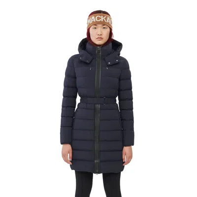 ASHLEY boasts light reycled down for women quilt tiers and a removable drawstring hood with adjustable storm visor. A ruched shell belt with Velcro clasp structures the semi-fitted three-quarter. The protective water resistant and repellant weave features 2-way stretch for movement and weatherproof protection. A high-performance essential with a sharp silhouette for seasonless styling. Three-quarter light nano down jacket Recycled down 800 fill power Deep Cold: Down to -15°C 2-way stretch shell Ruched elastic belt with branded Velcro clasp Centre front zip closure with leather welt Removable drawcord hood Adjustable storm visor Insulated invisible zip pockets Signature M logo patch on left sleeve Semi-fitted sillhouette SIZE & FIT SEMI-FITTED – Follows your body’s shape with ease. Designed to be worn with light layers. Coat length from shoulder to hem: 35'' / 88.9 cm. COMPOSITION & CARE INSTRUCTIONS Shell : 82% polyamide/nylon, 18% elastane/spandex. Lining : 82% polyamide/nylon, 18% elastane/spandex. Filling: 90% goose down, 10% feathers. Water-repellent & water-resistant. Dry clean by leather specialist using oil based solvent only. Do not use perchloroethylene. "