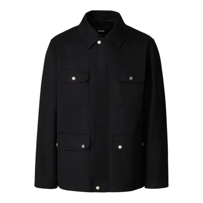 BRUNO is a utilitarian chore jacket crafted from a durable cotton and recycled polyester twill. It features patch pockets at the chest and waist, each finished with flap-and-snap closures for functional storage. A center front zipper is concealed by a snap placket, while a throat latch adds a functional detail. Ventilated eyelets, an internal zippered pocket, and MACKAGE embroidery elevate the design. Water- and wind-resistant, and fully lined, it blends everyday utility with effortless style.