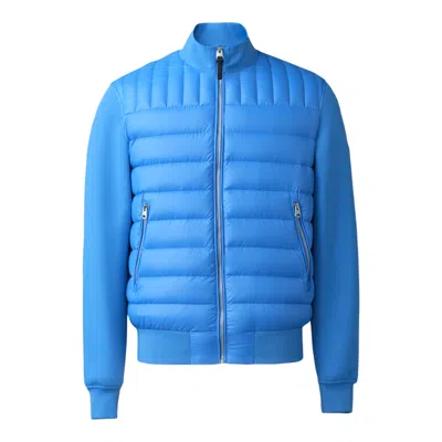 COLLIN-R is an transitional jacket for men with a classic bomber style. Expertly tailored to slim fit, it features a recycled lustrous nano down front contrasted with soft double face jersey sleeves and back. The rib knit stand collar and trims add tactical detailing and warmth. A modern multi-season layer with effortless style. Mixed media transitional jacket Bomber style Recycled lustrous light nano down front Double-face jersey sleeves and back Centre front zip closure Rib knit stand collar hem and cuffs Zip waist pockets Signature M logo patch on left sleeve Machine washable Slim fit SIZE & FIT SLIM – Our signature fit, closest to the body. Designed to be worn with light layers, all while keeping you warm. For heavier layering, we recommend sizing up. The model is 6'2" (187 cm) and wears a size L. Length from shoulder to hem: 26 ½'' / 67 cm. COMPOSITION & CARE INSTRUCTIONS Shell: 53% cotton, 47% polyester. Combo Shell 1: 100% recycled nylon. Combo: 72% polyamide/nylon, 27% polyester, 1% elastane/spandex. Lining: 100% recycled nylon. Filling: 90% GRS duck down, 10% feathers. Water-repellent & water-resistant. Close zippers. Remove fur. Remove the puller. Wash inside out. Wash in domestic machine in water not exceeding 40°C, at normal setting. Use mild detergent. Remove immediately after washing. Do not soak. Tumble dry low heat with tennis balls, until fully dried (1to 3 hours). Do not wet-clean. Do not bleach. Do not wring. Do not iron or press. Dry clean using oil based solvent only. Do not use perchloroethylene. "