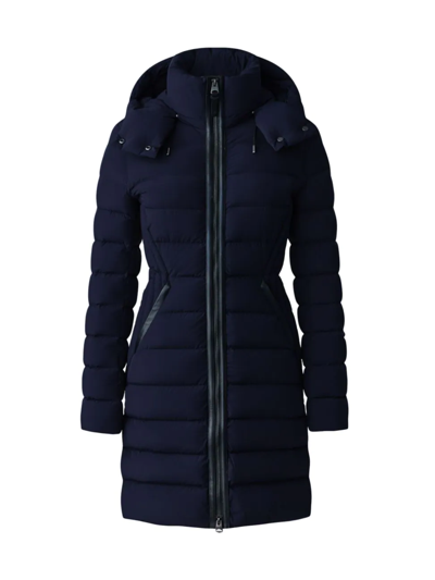 Filled with fluffy down feathers, the Farren coat by Mackage features a removable hood with an adjustable visor. Removable hood Stand collar Long sleeves Exposed front zipper Side welt pockets Lined Water repellent Two-way stretch 850+ fill power Comfort zone down to -10C/14F 82% nylon/18% spandex Fill: 90% goose down/10% feathers Dry clean Imported SIZE & FIT About 34" from shoulder to hem Model measurements: 5'10" tall Model is wearing a US size Small ABOUT THE BRAND Eran Elfassy, inspired by his brothers' leather expertise, founded Mackage in 1999 in Montreal, Canada. Two years later, with designer Elisa Dahan, they created a comprehensive outerwear brand offering everything from fine leather jackets to tailored wool coats and down parkas. Designed to be both comfortable and warm, the brand's high-performance gear also provides protection in freezing temperatures. Outerwear And Swimwear - Down > Mackage > Saks Fifth Avenue > Barneys. Mackage. Color: Navy. Size: Medium.