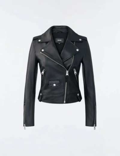 Mackage "Baya" biker jacket in smooth lambskin leather Notched collar with snaps; asymmetric zipfront Epaulets Long sleeves with zip cuffs Angled side zip pockets Relaxed fit Banded hem with snap loops Leather Lining: Polyester Leather method dry cleaning Imported