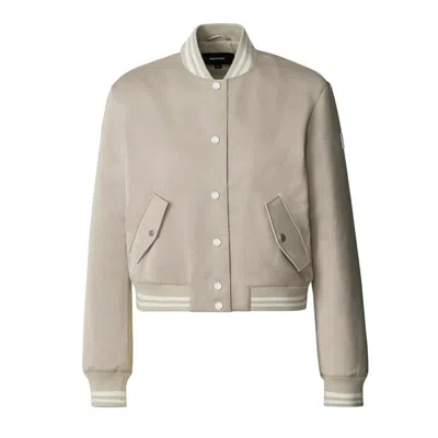 JUNIPER-SA is a regular-fit bomber jacket crafted from a smooth satin with a soft quilted lining for extra warmth. The design features rib knit trim at the collar, cuffs, and hem for a secure fit, complemented by flap pockets with reece openings and an inner welt pocket with zipper. Finished with signature metal ‘M’ logo, it blends refined construction with everyday functionality.