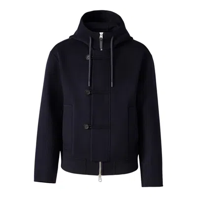 MALIK is a handcrafted jacket made from luxurious double-face wool with fully lined sleeves. Cut to a relaxed fit, it features a non-removable hood equipped with an adjustable drawcord for superior protection against the cold. A two-way center front zipper closure is concealed beneath a placket adorned with leather loop detailing and horn buttons. Modern and classic style come together in this enduring outerwear piece. Handmade hooded wool jacket RWS-certified double-face wool Non-removable hood with adjustable drawcord Two-way center front zipper closure Placket with leather loop detailing and horn buttons Rib knit hem Large welt pockets SIZE & FIT RELAXED – Loose fit for on the go comfort. Designed to be worn with heavier layers. The model is 6'2" (187 cm) and wears a size 40. Coat length from shoulder to hem: 26.5'' / 67 cm. COMPOSITION & CARE INSTRUCTIONSShell: 100% wool. Lining: 100% polyester.Dry clean by a leather specialist using only oil-based solvent. Do not use perchloroethylene. "