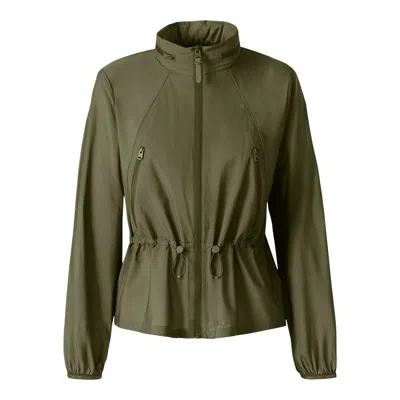 ROXY-SC is a rain jacket made from lightweight soft crinkle fabric with water-repellent, windproof, and breathable protection. It features a stand collar with a packable hood, a drawcord waist for adjustable shape, and underarm eyelets for ventilation. Seam-sealed construction ensures full weather resistance, while zippered chest and waist pockets add function and modern edge. The tonal MACKAGE silicone logo at the hem completes this refined technical silhouette.