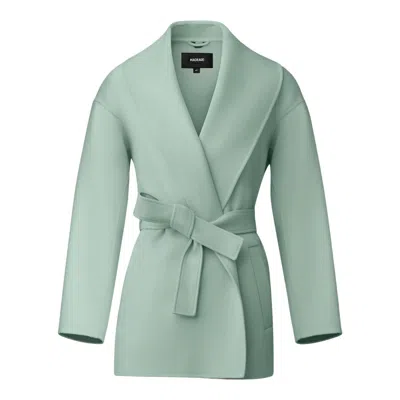 TYRA is a double-face wool wrap jacket with a robe silhouette and shawl collar. Expertly handmade and tailored to a relaxed fit, a sustainable leather and wool sash belt details the drop shoulder tie-front style. Ultra soft and unlined for a fluid drape. Modern and chic, a new classic to pair with everything. Double-face wool robe jacket Handmade tailoring Shawl collar Tie-front silhouette Drop shoulders Sustainable leather and wool sash belt Tonal belt loops Welt waist pockets Side slits Unlined for fluid drape Relaxed fit for on-the-go comfort SIZE & FIT RELAXED – Loose fit for on the go comfort. Designed to be worn with heavier layers. The model is 5'11" (180 cm) and wears a size XS. Length from shoulder to hem: 30'' / 76 cm. COMPOSITION & CARE INSTRUCTIONS Shell: 100% wool. Combo Shell 1: 100% lamb leather. Dry clean by leather specialist using oil based solvent only. Do not use perchloroethylene. "