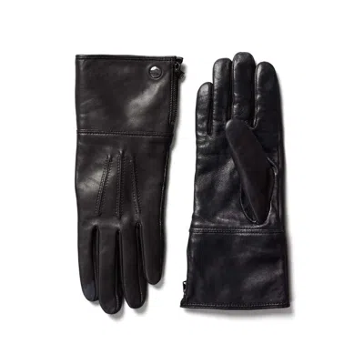 WILLIS is a driving glove for women crafted from supple (R) Leather and with a plush shearling cuff. Accented with a burnished zip, the sharply tailored trim can be worn down to warm the wrists or folded over to reveal the soft trim. The microfur lining and snug fit ensure ultimate comfort while the touchscreen capable underside offers on-the-go practicality. Detailed with tonal pintuck points and our signature double-sided engraved lettermark rivet. A luxe staple with modern-day versatility. (R) Leather driving glove Convertible zip cuff with plush shearling Touchscreen capable underside Soft microfur lining for ultimate warmth 3 pintuck points on the topside Signature double-sided engraved lettermark rivet COMPOSITION & CARE INSTRUCTIONS Shell: 100% lamb leather. Fur: 100% sheep. Dry clean with leather specialist only "