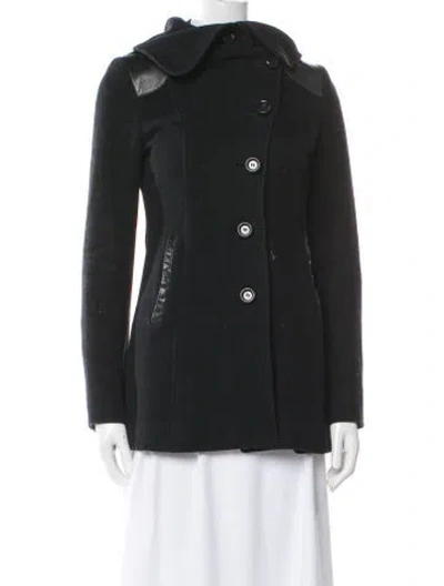 Mackage Wool Coat Black Leather Trim Embellishment & Pointed Collar Short Slit Pockets & Button Closure Fit: Coats by Mackage typically fit true to size. | Mackage Wool Coat in Black, Women's XS
