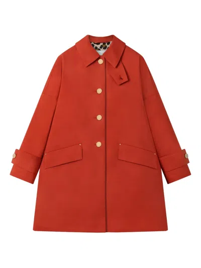 brick red large front pockets gold-tone button closure contrasting leopard print lining