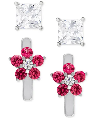 MACY'S 2-pc. Set Lab Grown Ruby (1/10 Ct. T.w.) & Lab Grown White Sapphire (5/8 Ct. T.w.) Square Stud & Flo