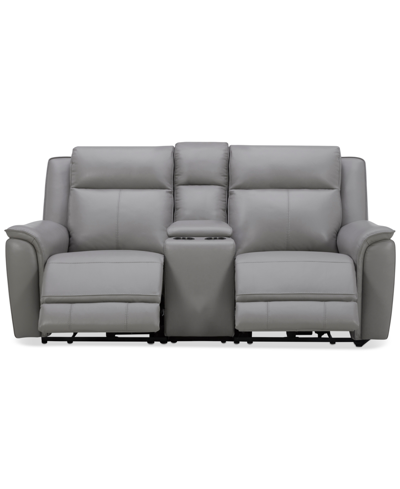 MACY'S Addyson 77" 3-pc. Leather Sofa With 2 Zero Gravity Recliners With Power Headrests & 1 Console, Creat In Ash