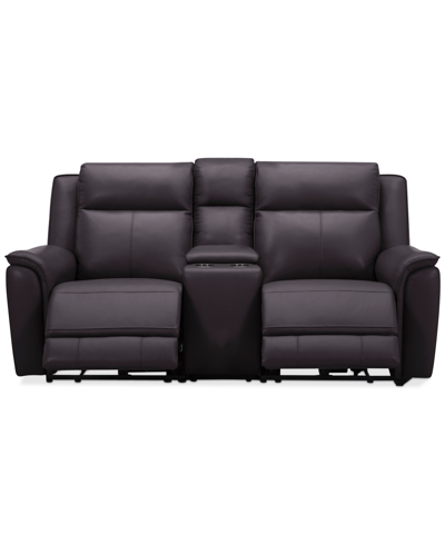 MACY'S Addyson 77" 3-pc. Leather Sofa With 2 Zero Gravity Recliners With Power Headrests & 1 Console, Creat In Chocolate