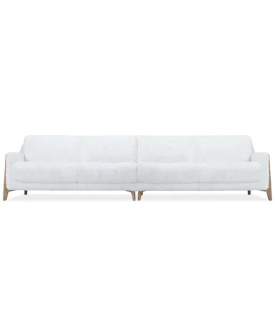 Wood feet and arm accents in a light greige finish along with an open base make for an airy look on this mid-century modern two-piece sectional. Adding both to its visual and comfort appeal, is its luxuriously plush faux fur upholstery, offering a supremely soft hand.