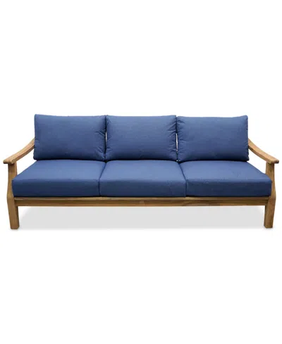Wondrous teak construction provides an earthy feel to this beautiful outdoor seating set. The gentle curves of the arms are complemented by delightful soft fabric that blends magnificently with the natural teak.