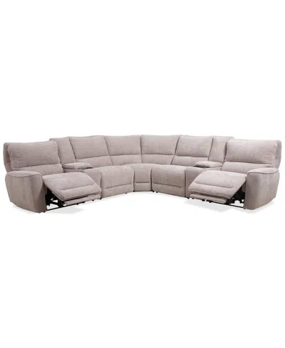 MACY'S Closeout! Deklyn 129" 7-pc. Zero Gravity Fabric Sectional With 2 Power Recliners & 2 Consoles, Creat In Cobblestone