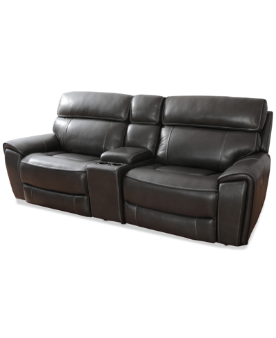 MACY'S Closeout! Hutchenson 96" 3-pc. Zero Gravity Leather Sofa With 2 Power Recliners And 1 Console, Creat In Grey