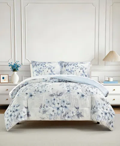 The Colesville Comforter Set by Macy's displays softly rendered florals in cool blue hues. Printed reversible for added styling options, its calm and refreshing design creates an atmosphere of relaxed comfort with a light, airy presence for an effortlessly serene bedroom.