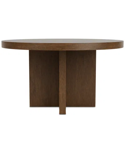 The Davie Round Table features streamlined silhouettes and a low-profile design, elegantly showcasing the beauty of pin knotty oak. Exposed end graining adds a rustic element to this effortlessly casual dining table.
