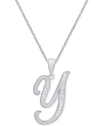 Diamond Accent Script 18" Initial Pendant Necklace In Silver Plate, Gold Plate & Rose Gold Plate In Y,silver