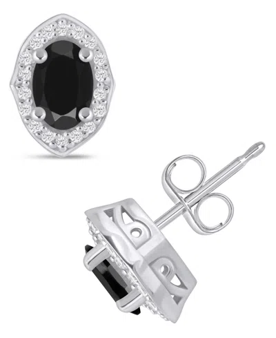 MACY'S Gemstone And Diamond ((1/5 Ct. T.w.) Halo Stud Earrings In 10k White Gold (also In 10k Yellow Gold) In Black