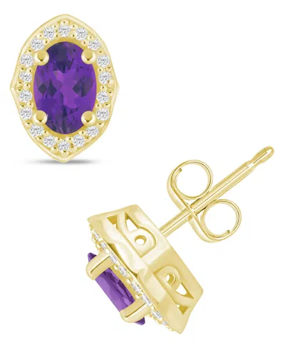 MACY'S Gemstone And Diamond ((1/5 Ct. T.w.) Halo Stud Earrings In 10k White Gold (also In 10k Yellow Gold) In Multi