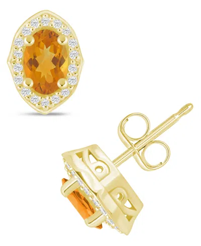 MACY'S Gemstone And Diamond ((1/5 Ct. T.w.) Halo Stud Earrings In 10k White Gold (also In 10k Yellow Gold) In Multi