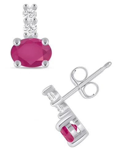 MACY'S Gemstone And Diamond (1/8 Ct. T.w.) Earrings In 10k White Gold (also In 10k Yellow Gold) In Pink