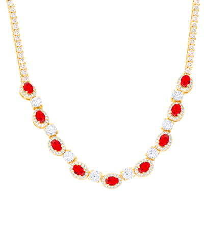 Lab-created Ruby (4-3/4 Ct. T.w.) & Cubic Zirconia Halo 18" Statement Necklace In Gold-plated Brass