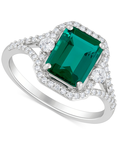 MACY'S Lab-grown Emerald (2-1/10 Ct. T.w.) And White Sapphire (3/8 Ct. T.w.) Ring In Sterling Silver