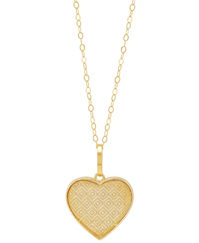MACY'S Patterned Heart Beaded Edge Reversible 18" Pendant Necklace In 10k Gold