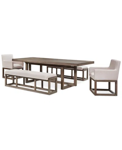 MACY'S Portmore 5 Pc Rectangular Set (table, 2 Benches & 2 Arm Chairs), Created For In Brown