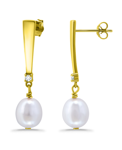 MACY'S White Freshwater Pearl Polish Graduated Bar Drop Earring In Gold