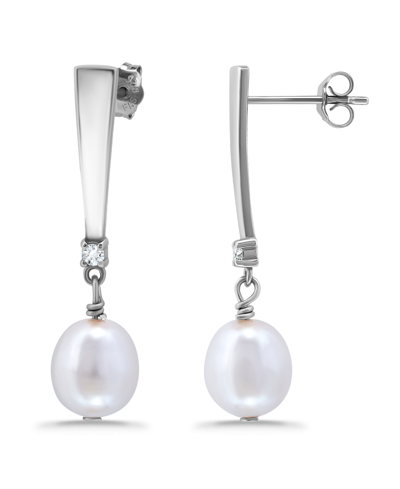 MACY'S White Freshwater Pearl Polish Graduated Bar Drop Earring In Silver
