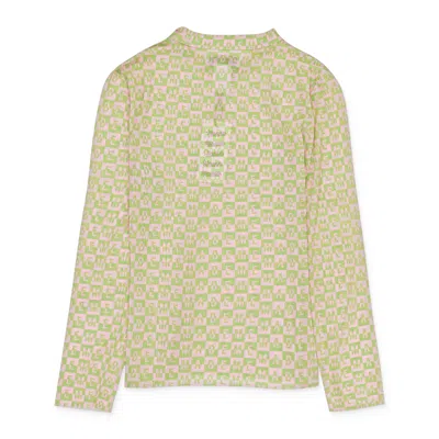 MADEME Checkered Logo Mesh Long Sleeve Pink/green Top In Multi