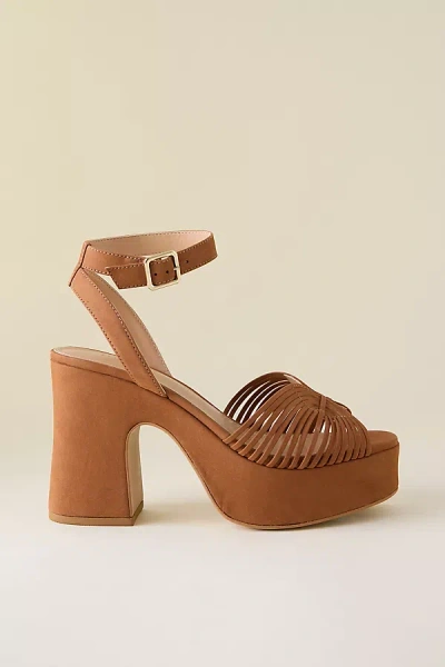 By Maeve Leather upper, insole Rubber sole Buckle styling Imported Platform Heels by Maeve in Brown, Women's Size: 40, Leather/Rubber at Anthropologie