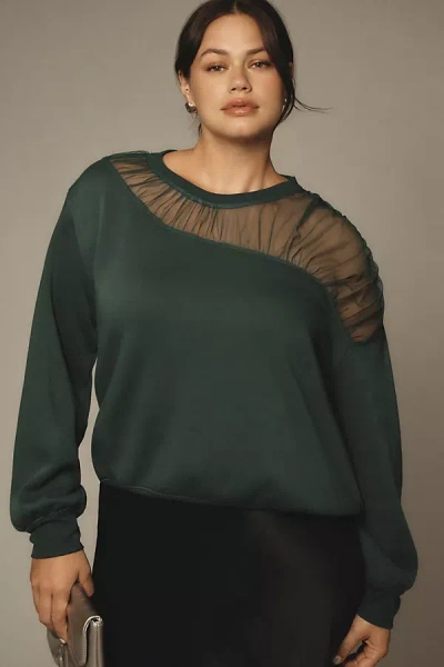 Polyester, rayon; polyester, rayon, elastane ribbing; polyester mesh Pullover styling Machine wash Imported Sheer-Insert Cozy Pullover by Maeve in Green, Women's, Size: 2 X, Polyester/Rayon/Elastane at Anthropologie