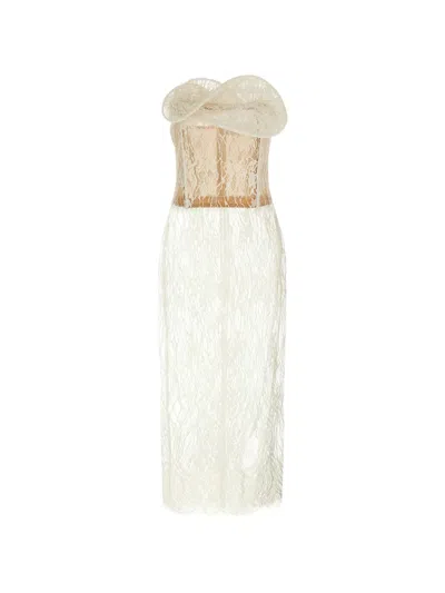 MAGDA BUTRYM Strapless Lace Midi Dress Sheer Scalloped Hem In Multi