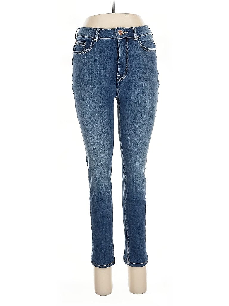 Magic Jeans, Size: 8. Item Details: Blue, Solid Pattern, Medium Wash, Skinny Leg, Cropped, High Rise, Women's Bottoms, Cotton/Elastane