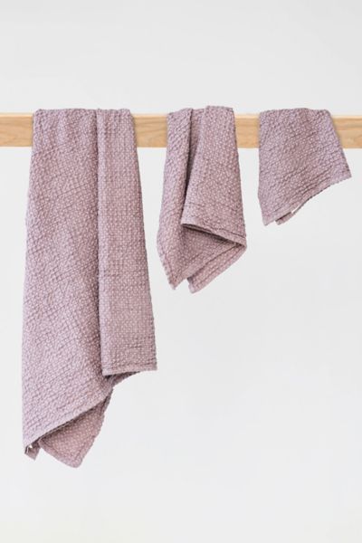 Linen-cotton blend towel set in various colors. The puffy waffle weave not only increases absorbency, but also gently exfoliates your skin. Linen is naturally antimicrobial and allows for easy airflow ensuring your towels dry quicker and stay free of mildew, germs or unpleasant odors. Wrap yourself in luxury! Content + Care Includes three towels Made from linen (53%) and cotton (47%) blend Stone washed for maximum softness Imported Size Set includes: Washcloth (face towel): 16x20'' / 40x50 cm Hand towel: 20x28" / 50x70 cm Bath towel: 39x55" / 100x140 cm MagicLinen 3-Piece Waffle Towel Set in Woodrose at Urban Outfitters