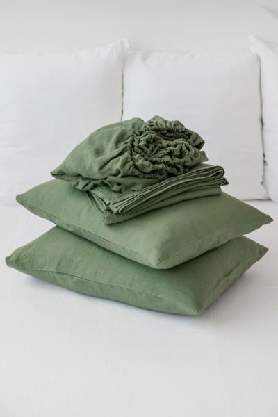 Dress your bed with our linen sheet set. Comes with a fitted sheet, a flat sheet, and two pillowcases of your choosing. Stone washed for maximum softness and durability, these sheets will give you the night's rest you've been dreaming of. Available in various colors. Includes one fitted sheet + one flat sheet + two pillowcases (For Size guide see images above) Made from 100% European flax Stone washed for maximum softness OEKO-TEX certified product (absent of harmful chemicals) Imported MagicLinen 4-Piece Linen Sheet Set in Forest Green at Urban Outfitters