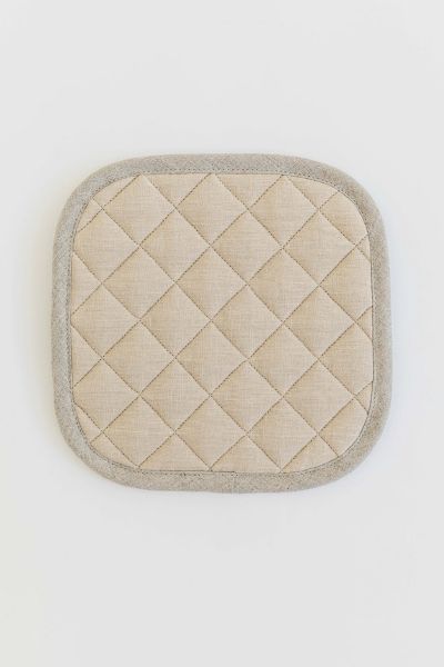 Linen pot-holder available in various colors. Quilted on the outside with heat-insulating padding inside, this pot-holder will protect your fingers and palm from the heat. Sturdy and easy to care for, it's irreplaceable in the kitchen. Includes one pot-holder Pot-holder size is approx. 8x8" / 22x22 cm Finished with a loop for hanging Made from 100% European flax Stone washed for maximum softness OEKO-TEX certified product (absent of harmful chemicals) Imported