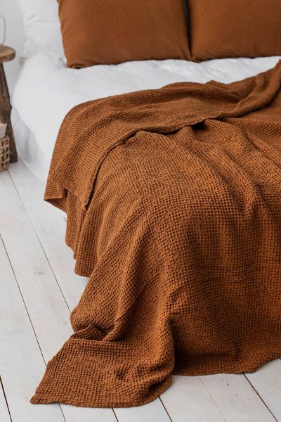 Linen-cotton blend blanket in various colors. Add a layer of coziness to your bed with this blanket that comes in a cozy waffle weave. Style it as a bed throw or use it as a wrap when you get cold. The natural properties of linen guarantee the feeling of comfort all year round. Please note that due to the many variations in monitors and browsers, actual colors may vary. Includes one blanket Available in: 87x83" / 220x210cm and 102x94" / 260x240cm Made from linen (52%) and cotton (48%) blend Stone washed for maximum softness Imported MagicLinen Waffle Blanket in Cinnamon at Urban Outfitters