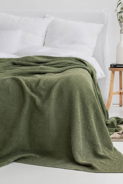 Linen-cotton blend blanket in various colors. Add a layer of coziness to your bed with this blanket that comes in a cozy waffle weave. Style it as a bed throw or use it as a wrap when you get cold. The natural properties of linen guarantee the feeling of comfort all year round. Please note that due to the many variations in monitors and browsers, actual colors may vary. Includes one blanket Available in: 87x83" / 220x210cm and 102x94" / 260x240cm Made from linen (52%) and cotton (48%) blend Stone washed for maximum softness Imported MagicLinen Waffle Blanket in Forest Green at Urban Outfitters